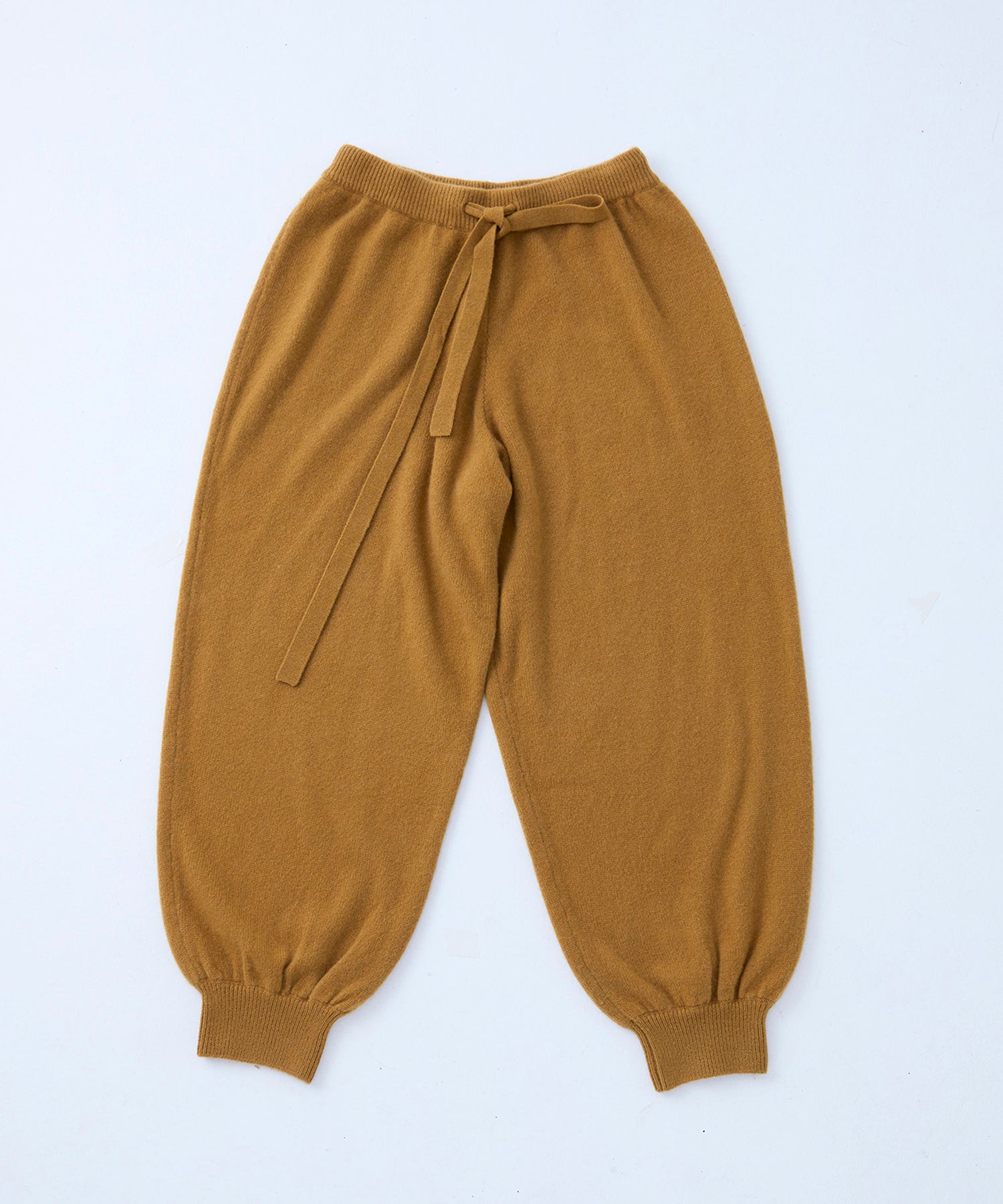 一見すっきりとした表面感ながら、7Gのしっかりとした糸で編み上げたボリュームのある天竺ニットパンツ。